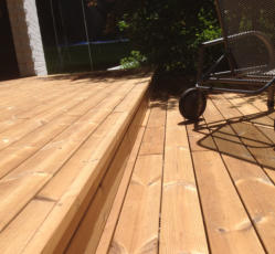 Eine Terrasse aus Holz wirkt wärmer,  natürlicher und gibt Ihrem Zuhause  einen einzigartigen zusätzlichen Wohl- fühlort für erholsame Stunden im Freien  und das zu jeder Jahreszeit! Das gesamte Material beziehe  ich von Großhändlern aus  der Region. Nicht nur die Wahl des  richtigen Deckmaterials  ist entscheidend, auch die  Unterkonstruktion sollte sorgfältig ausgewählt werden. Sie ist entscheidend für die  Langlebigkeit Ihrer Holzterrasse. Ein gutes Ergebnis setzt eine gute Beratung und Planung voraus.